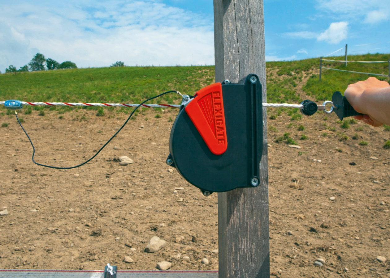 Das flexible Torsystem. Mit FlexiGate können Sie Koppeleingänge einfach und bequem unter Strom setzen. Bei jedem Öffnen wird das Leitermaterial von einer Stahlfeder eingerollt.