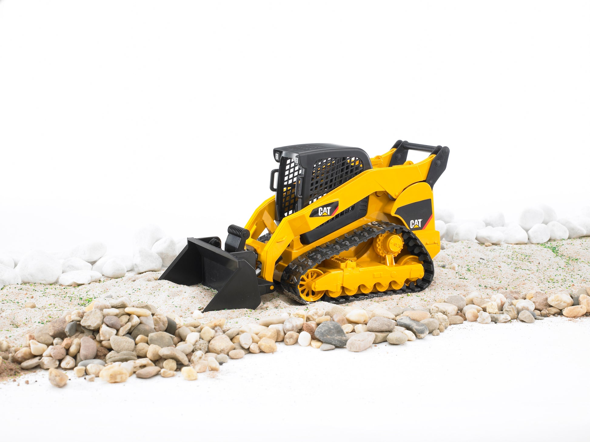 Der Cat® Kompaktkettenlader 277C ist ein wahres Multitalent. Kraftvoll, flexibel und wendig ist er auf jedem kleineren Terrain die erste Wahl. Die Funktionen des Kompaktkettenladers sind vergleichbar mit denen des Cat® Kompaktladers, jedoch besitzt der Kompaktkettenlader ein Gummiketten-Laufwerk, durch das ein deutlich niedrigerer Bodendruck entsteht. Besonders beim Spielen macht es große Freude, den präzise arbeitenden Ketten zuzusehen, während man den Kompaktkettenlader über die unterschiedlichsten Flächen bewegt. Der bewegliche Arm des Kompaktkettenladers kann in mehreren Positionen eingerastet werden und aufgrund einer speziellen Konstruktionsweise eine besonders hohe Ladehöhe erreichen. Durch einen bereits bei mehreren BRUDER-Fahrzeugen verwendeten Adapter für Anbaugeräte, können mit dem Kompaktkettenlader und dem optional erhältlichen Zubehör innerhalb kürzester Zeit unterschiedlichste Arbeitsvorgänge bewältigt werden.