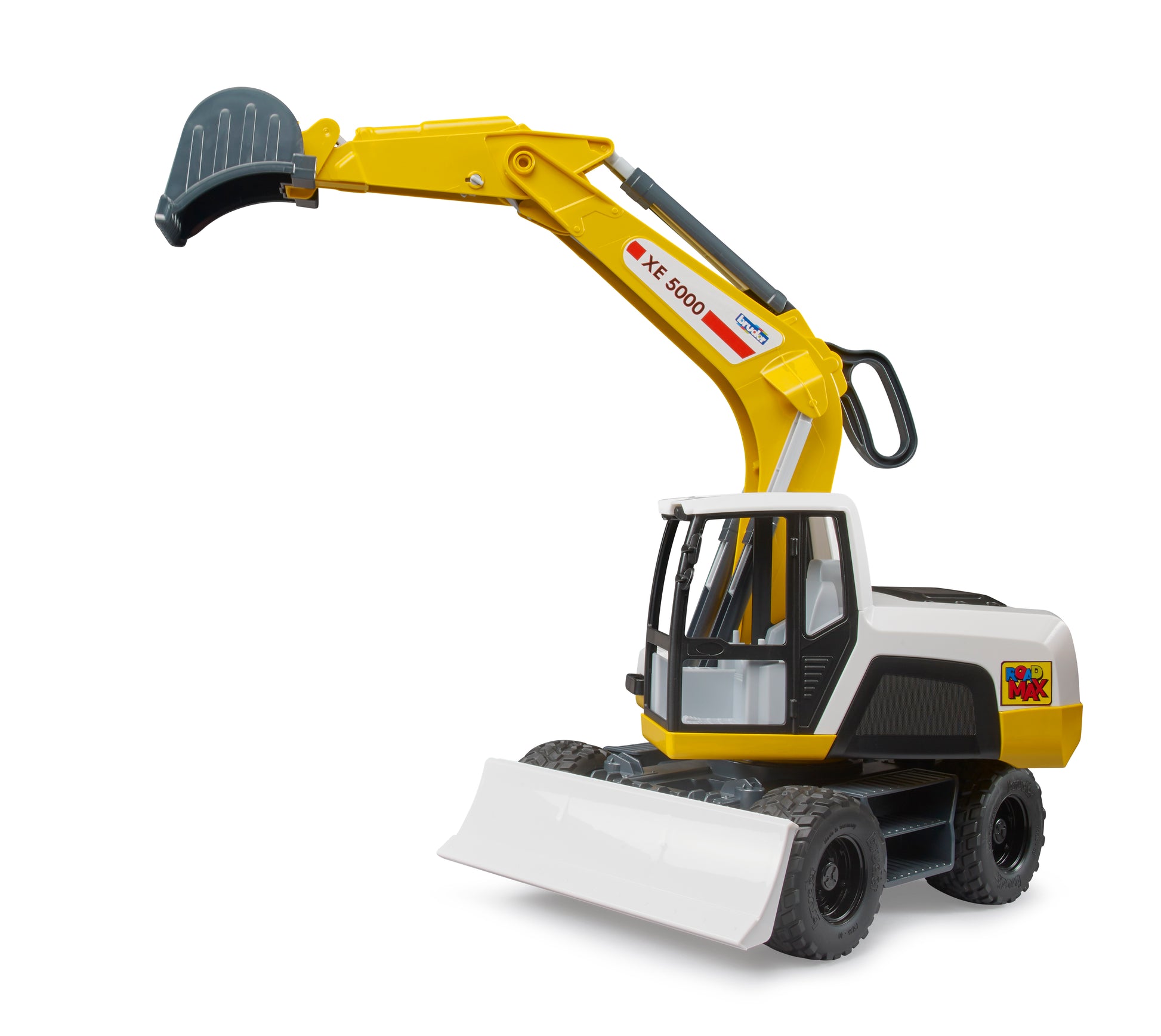 Die BRUDER Themenwelt Baufahrzeuge erfreut sich größter Beliebtheit, sind die Spielzeuge doch in höchstem Maße detailliert und mit umfangreichen Funktionen ausgestattet. In diesem erfolgreichen Segment kommt der ROADMAX Mobilbagger hinzu. Dieses Fahrzeug im raffinierten BRUDER Design überzeugt durch tolle Funktionen und eine einfache Handhabung. Über den zentralen Griff kann der gesamte Baggerarm gehoben und gesenkt, sowie die Schaufel bewegt werden. Auch im Sandkasten macht dieser Bagger jede Menge Spaß. Der Baggeraufbau ist um 360° drehbar und das große Baggerschild ist höhenverstellbar. Auch für die Kleinsten ist dieses Spielzeug ein Volltreffer, da wir diesen Artikel für Kinder ab 2 Jahren empfehlen.