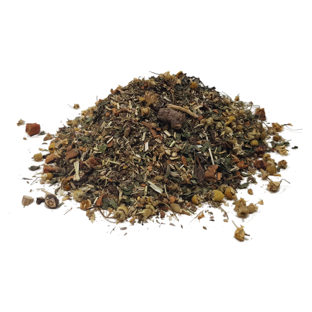 Pfefferminze, Kamille, Fenchel, Mädesüß, Löwenzahnwurzel, Harongarinde, Flohsamen, Apfelgranulat, Wermut, Schafgarbe, Rote Beete