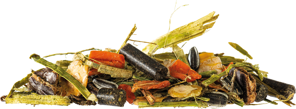 Zusammensetzung Gras-Grünmehl-Pellets (37,3%); Sonnenblumen-Extraktionsschrot (13%); Leinkuchen (11,9%); Luzerne, getrocknet und gehäckselt (6%); Apfeltrester Flakes (5,5%); Johannisbrotstücke, getrocknet (5%); Mariendistelöl (4,9%); Apfeltrester (3,8%); Sonnenblumensaat (2,9%); Mohrrübenstücke, getrocknet (2%); Melasse (1,2%); Kräuter (Mariendistelfrüchte, Brennnesselkraut, Löwenzahnwurzel, Weißdornblätter) (1%); Erbsenflocken (1%); Bierhefe (1%); Calcium-Natrium-Phosphat (0,9%); Calciumcarbonat (0,7%); Natriumchlorid (0,6%); Magnesiumoxid (0,5%)