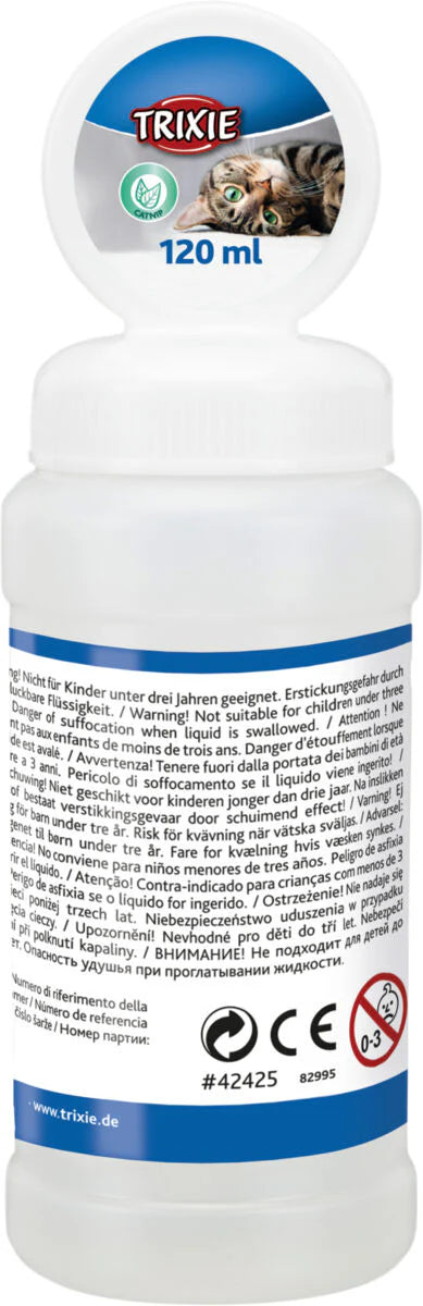 Die mit Katzenminze-Extrakt angereicherte Seifenblasen-Flüssigkeit regt den natürlichen Spieltrieb deiner Katze an. Nicht nur das Fangen der umherfliegenden Seifenblasen bereitet deiner Katze Vergnügen, sondern auch der anregende Duft von Katzenminze (Catnip). Nach dem Spiel mit den Seifenblasen sollte der Boden gereinigt werden, damit kein Gewöhnungseffekt besteht. Sollte deine Katze beim Spielen eine kleine Menge der Flüssigkeit verschlucken, ist das unbedenklich.