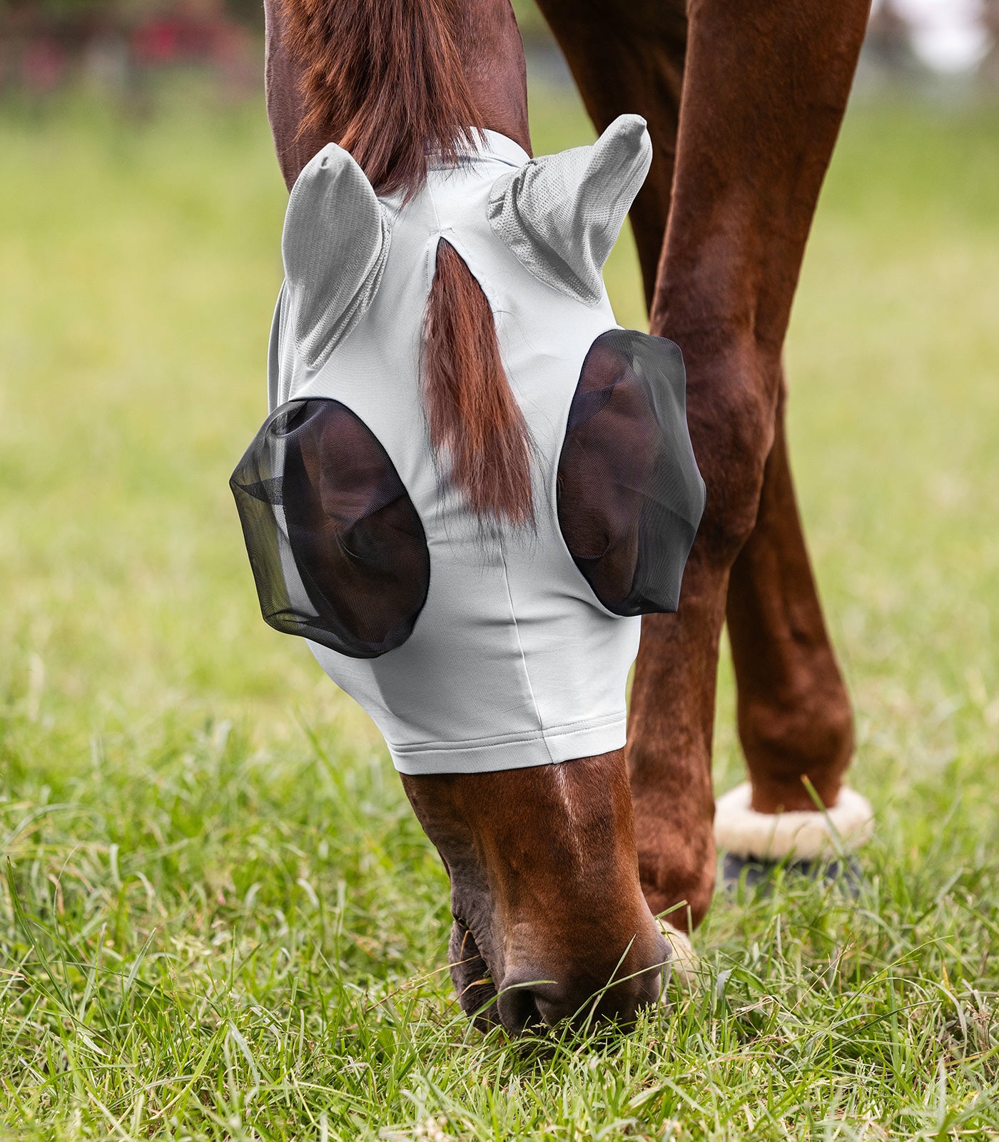 Idealer Schutz vor lästigen Fliegen. Ein langer Reißverschluss gewährleistet einfaches An- und Ausziehen. Durch das elastische Material liegt die Fliegenmaske gut an und gibt Fliegen somit keine Chance. Mit extra viel Augenfreiheit.