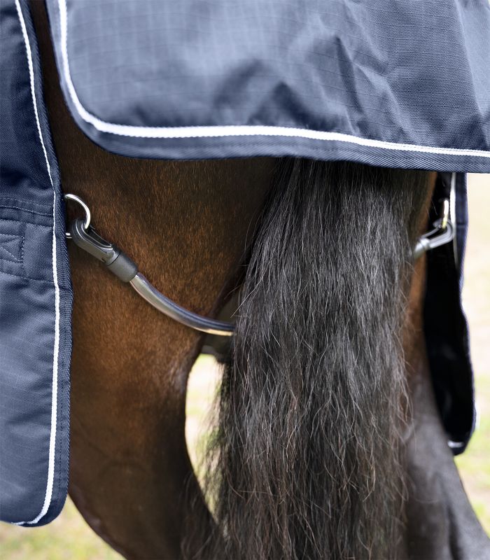 Elastischer, mit PVC ummantelter Schweifriemen. Das Material ist besonders leicht zu reinigen.